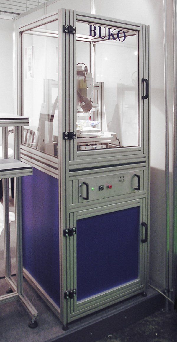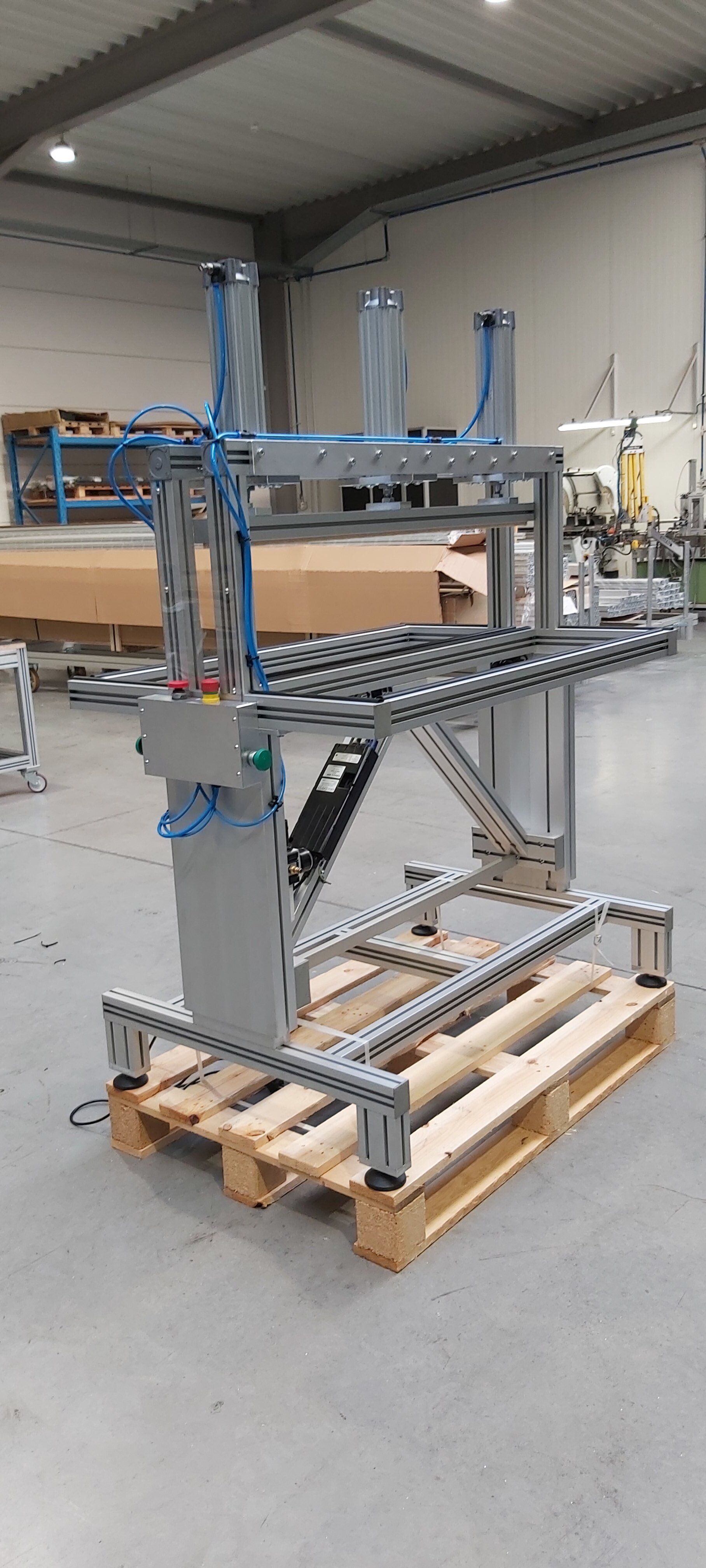 Nous souhaitons vous présenter nos projets de construction de machines et d'enceintes. Ci-dessous, vous pouvez voir un écran mobile pour une machine, une enceinte dans un atelier et une table d'assemblage. Tous ces éléments ont été réalisés à l'aide de profilés en aluminium et d'accessoires d'Alumes.